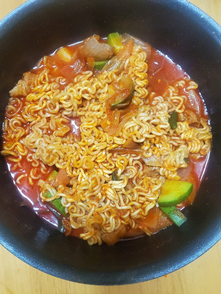맛 : 돼지고기가 많이 있어서, 만족한 둘째아들, 라면이 있어서 만족한 큰아들,
